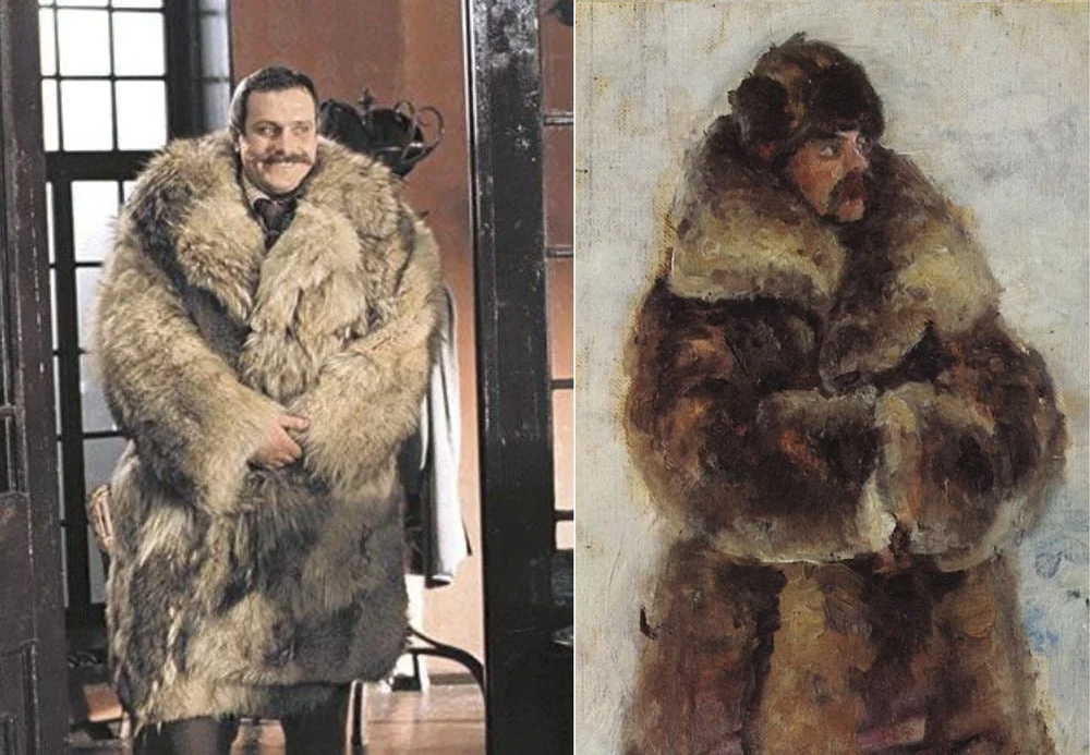 И снова о шубе. И не только о ней. Дзен продолжает подкидывать интересные разборы Фильма, в данном случае "Собаки". Рекомендую к чтению - много любопытных замечаний, да и комменты не подкачали. Интересная одежда в фильме "Собака Баскервилей" https://dzen.ru/a/Z7mbBDw_PTcBnMjg?share_to=link Цитата: "Одежда персонажей "Собаки Баскервилей" разнообразна и интересна. Ну вот взять, например, сэра Генри. На историческую родину он прибыл в волчьей шубе. С одной стороны, это правда жизни: он занимается фермерством, видимо, часто выезжает в поля, а зимой ветра в канадских полях весьма холодны, шуба для такой погоды - отличный вариант. Но с другой стороны, это отсылка к русскому живописцу Сурикову, которому Никита Михалков приходится правнуком. Взгляните на портрет родного брата художника и, что называется, найдите 10 отличий".