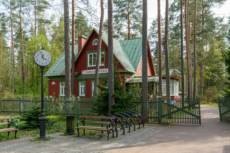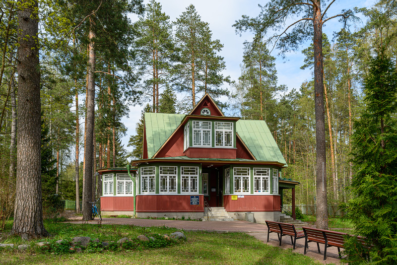 Хорошая в Комарово поселковая библиотека. 2-этажный деревянный дом в отличном состоянии. Выставка маленькая, но всё сделано аккуратно и со знанием дела. По ПШХ ничего нет, но есть 2 эскиза для "Под каменным небом" и 2 для "Пиковой дамы".